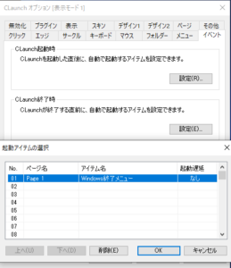 イベントは、「CLaunch」の起動や終了と共に、登録してるアイテムの起動をする場合に使います。